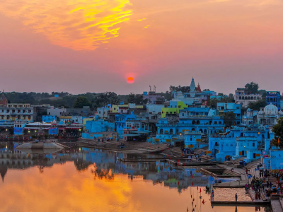Experience the divine charm of Pushkar, one of India’s oldest and most sacred towns, where spirituality and tradition come together in perfect harmony. Nestled around the tranquil Pushkar Lake and surrounded by rolling desert landscapes, this holy town is home to the world-famous Brahma Temple, vibrant ghats, and the colourful Pushkar Camel Fair that attracts travellers from across the globe.